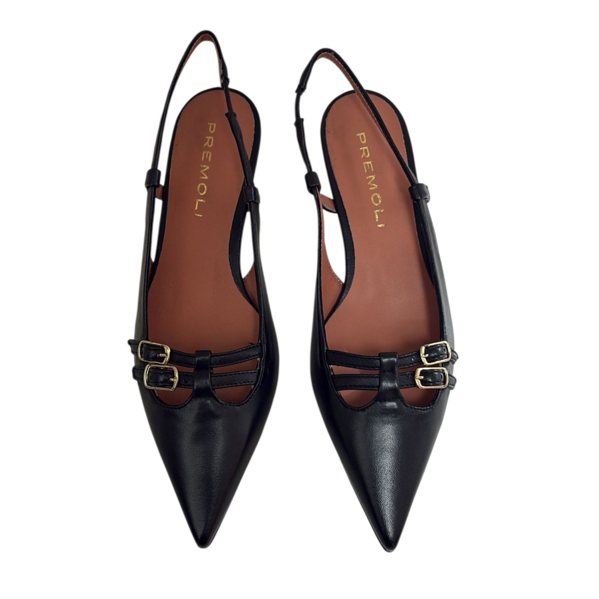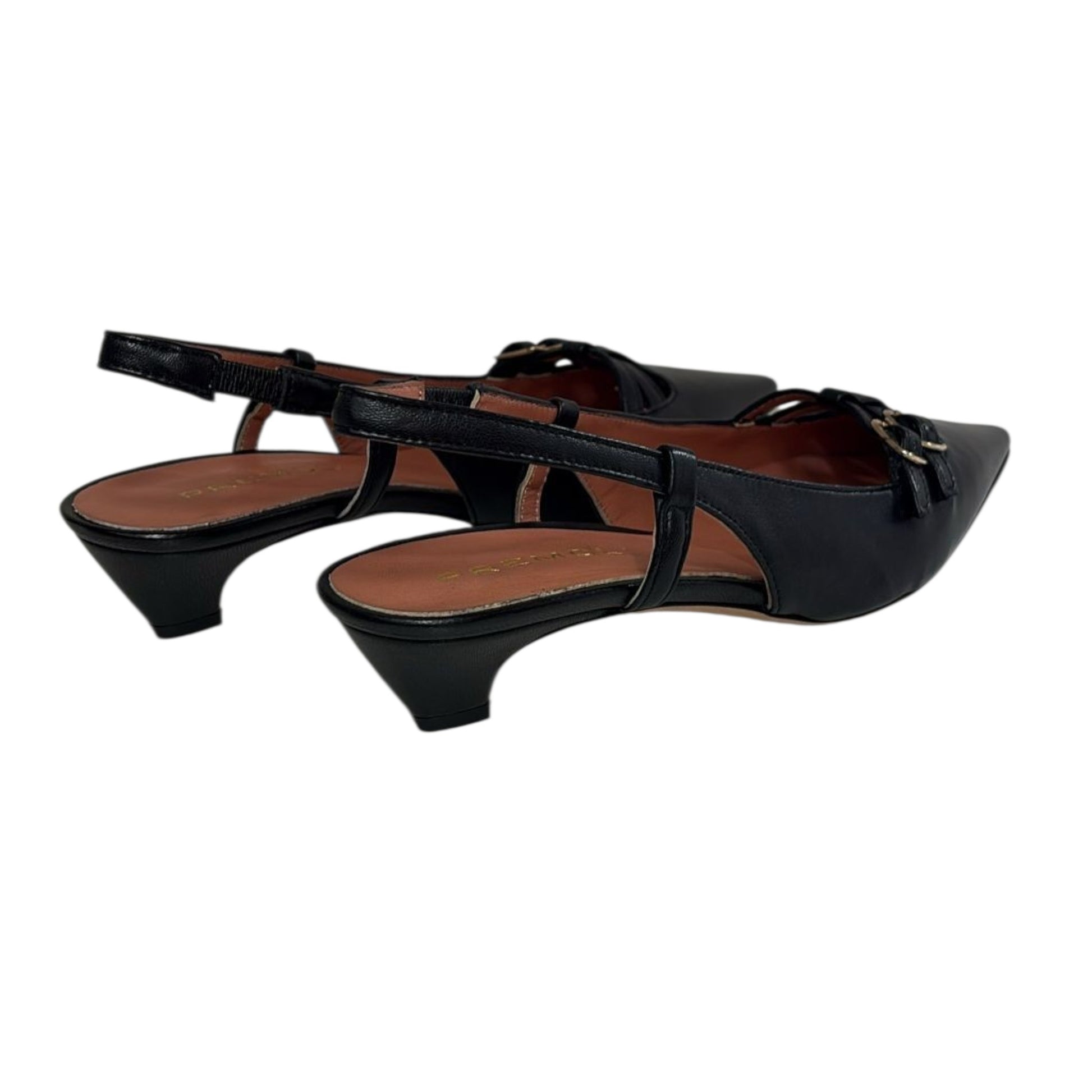 Black leather kitten heeled slingback