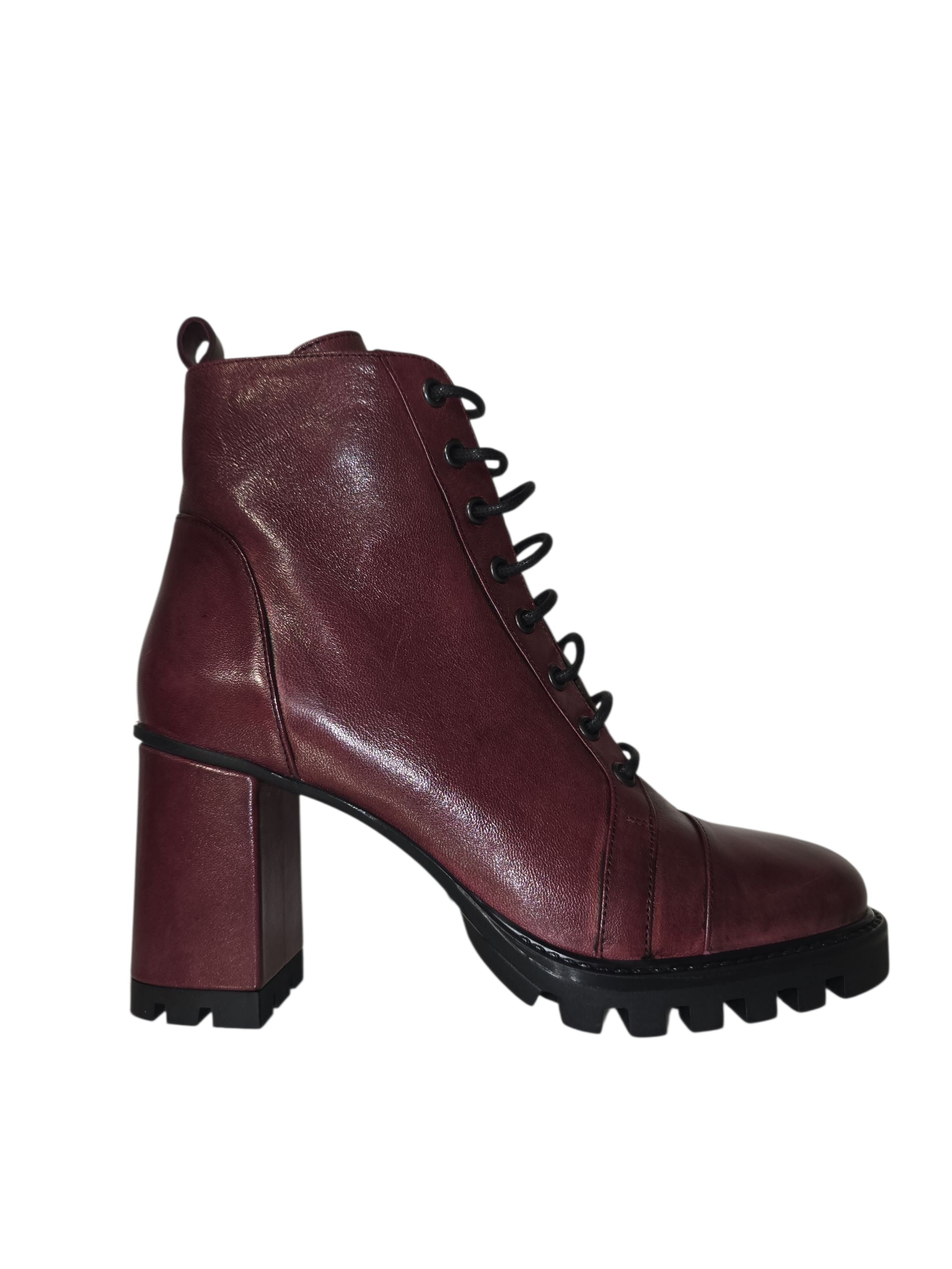 Border leather ankle boot with chunky heel