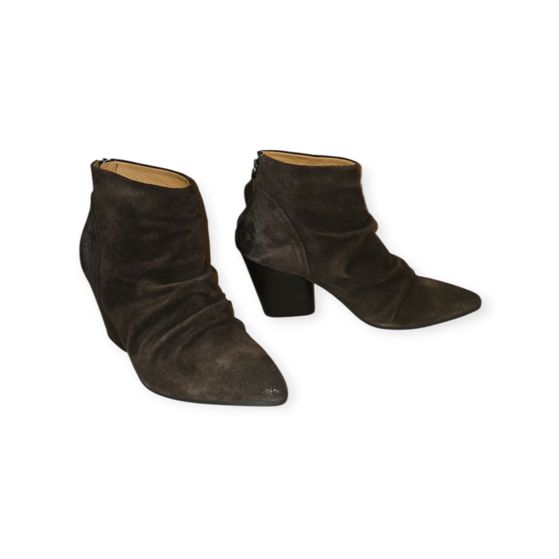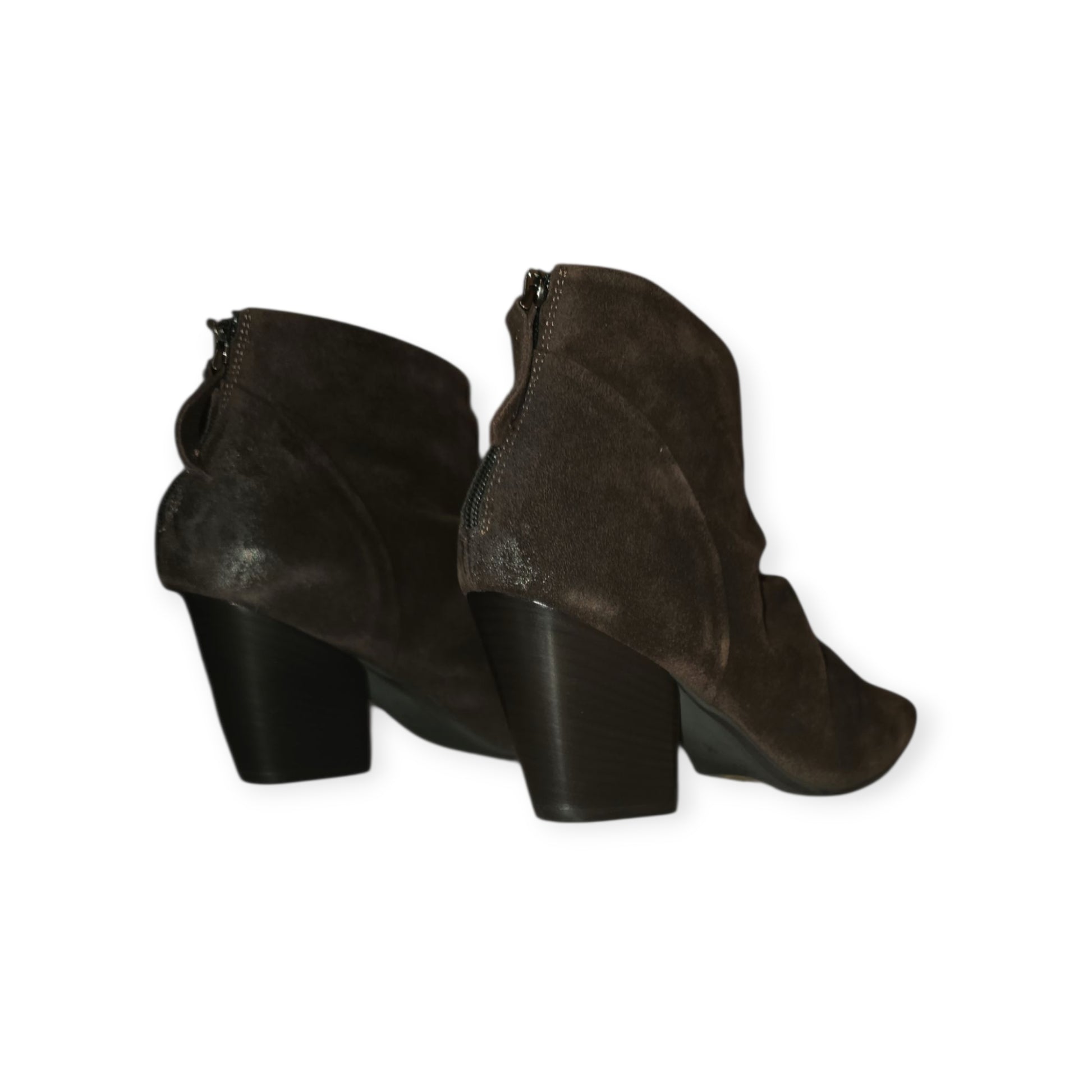 Brown Suede leather boots with zip at back and chunky heels