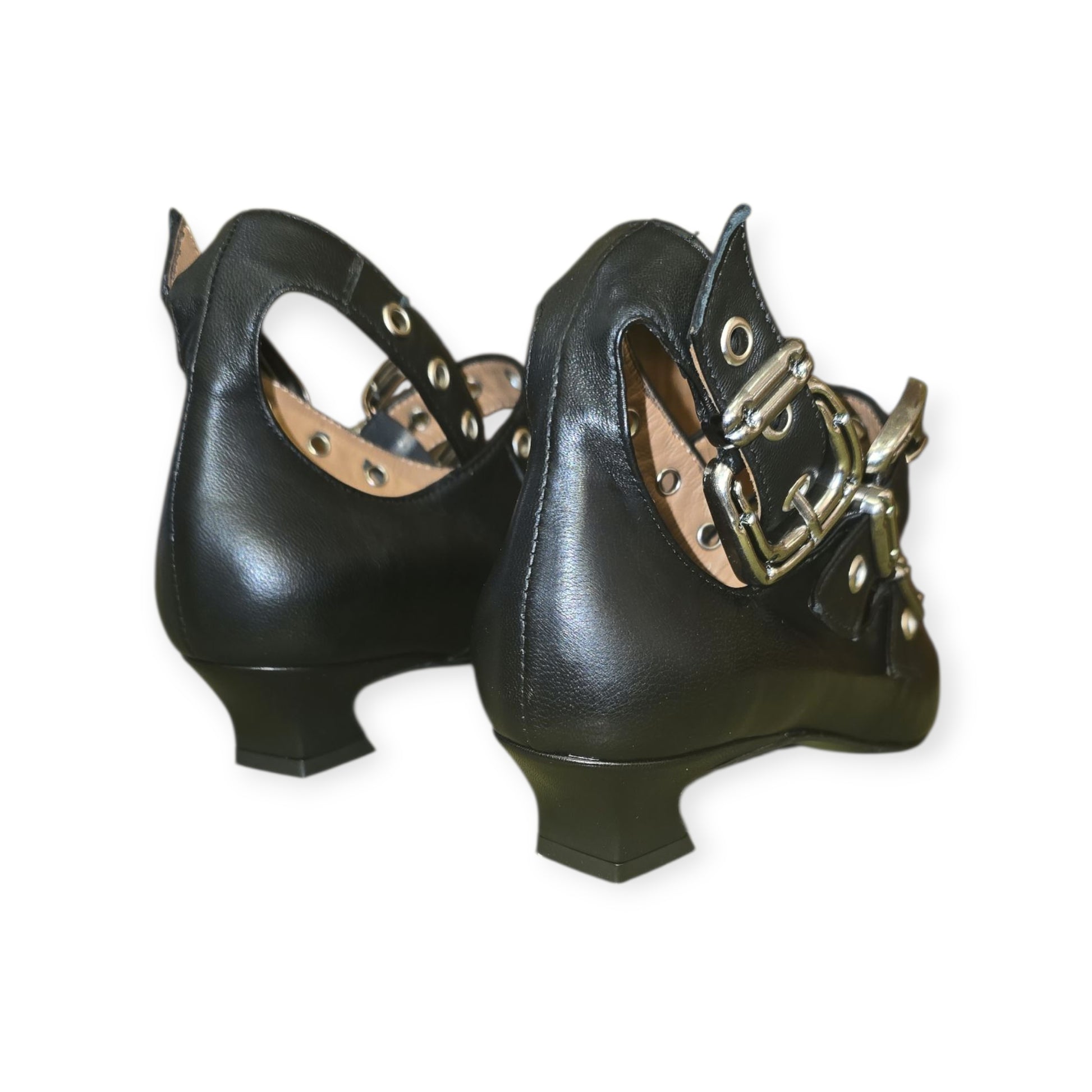 Black Kitten heel shoe with buckles.